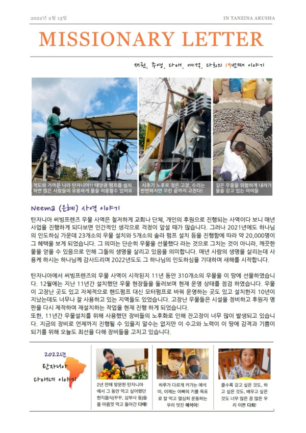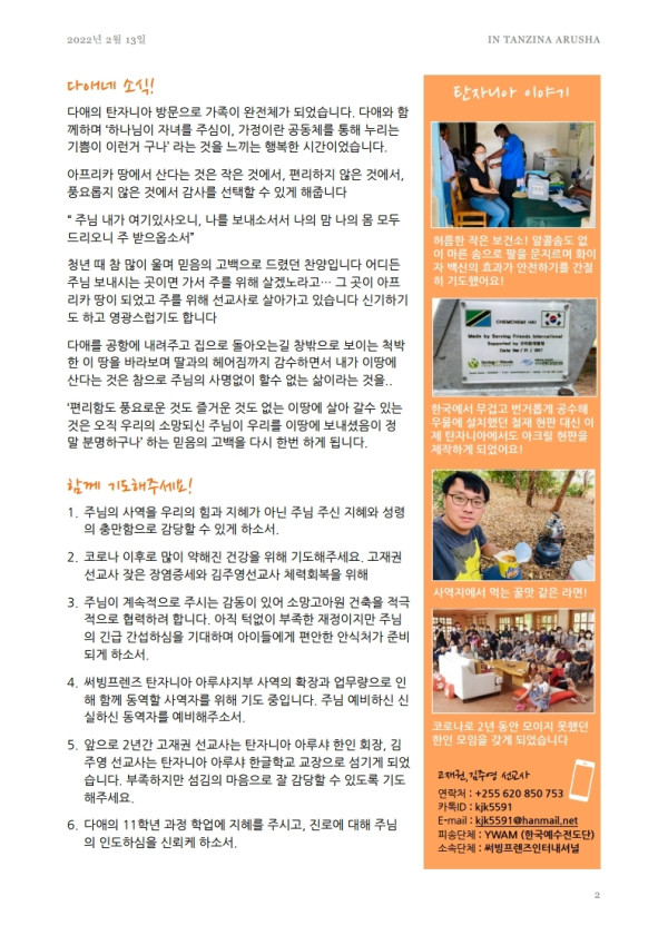 고재권/김주영 선교사 가정 기도편지 페이지 정보 작성자 밴쿠버예수비전 댓글 0건 조회 3,789회 작성일 22-02-16 10:44 목록 본문 선교사님의 19번째 기도편지입니다.항상 기도로 지원해 주시는 모든 분들께 감사드립니다! 이전글우크라이나의 평화를 위해 기도하는 분들에게! 22.03.16 다음글시리아 출신의 하이스와 나줌 가정 21.11.17 댓글 0 댓글목록 등록된 댓글이 없습니다. 목록