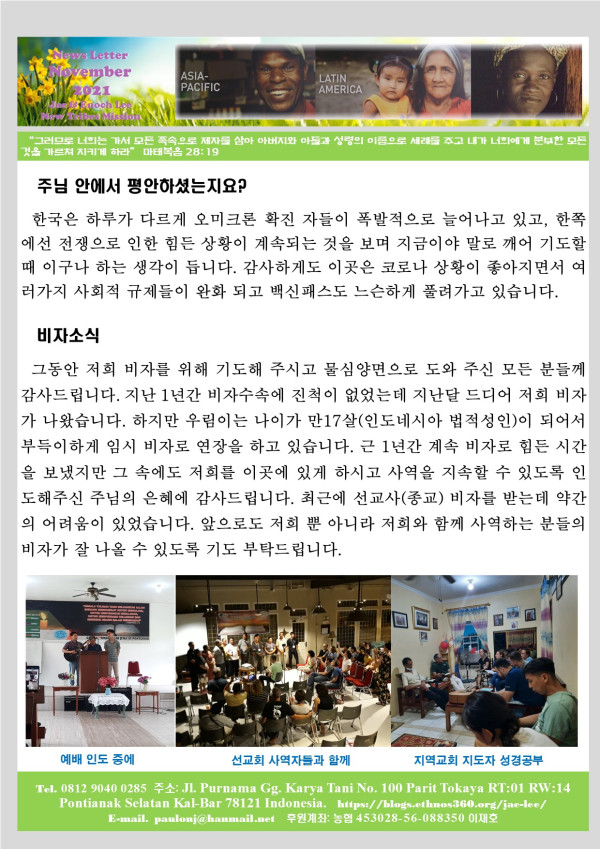 이재호/이에녹 선교사 선교편지(인도네시아)