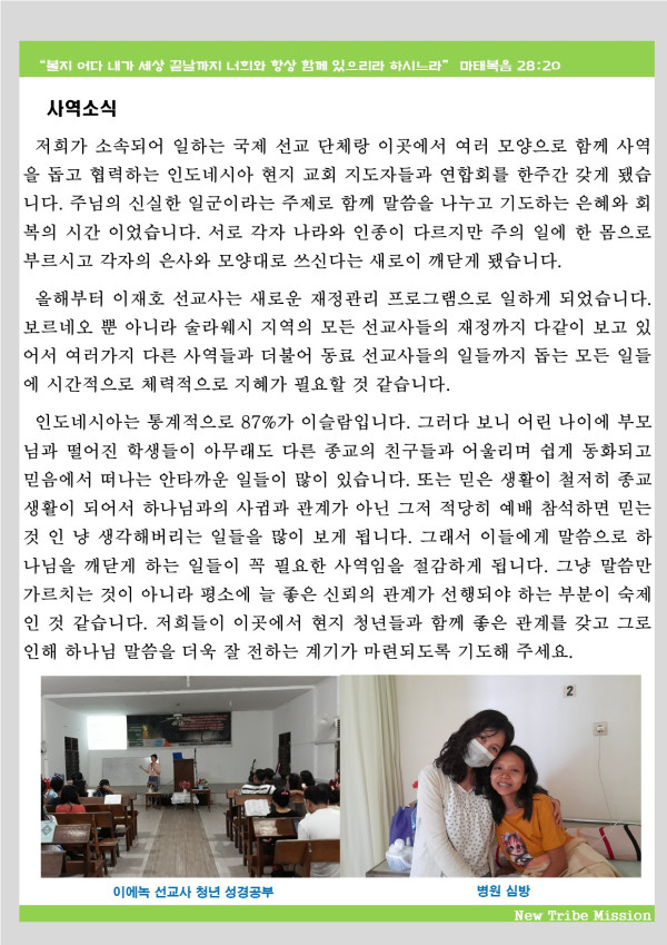 이재호/이에녹 선교사 선교편지(인도네시아) > 선교소식