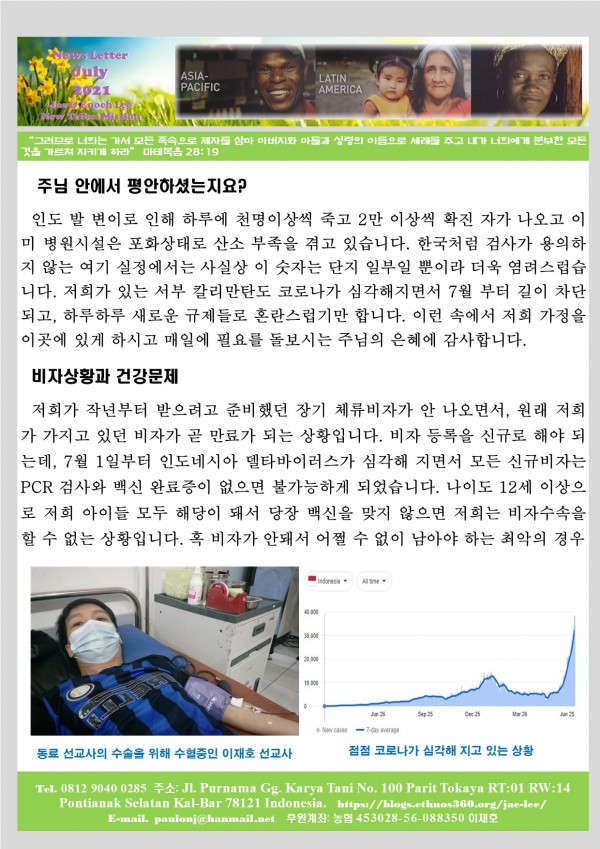 이재호/이에녹 선교사 가정의 선교 소식 > 선교소식