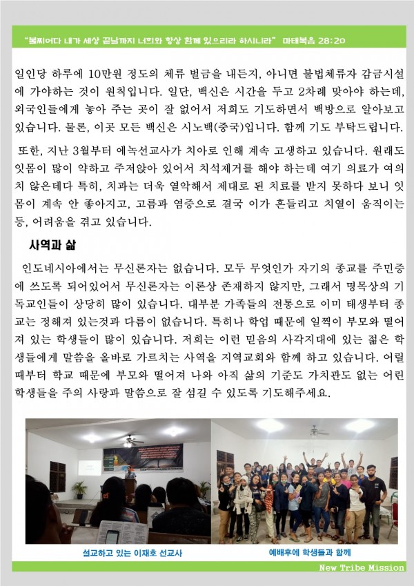 이재호/이에녹 선교사 가정의 선교 소식