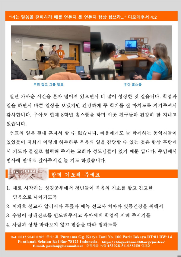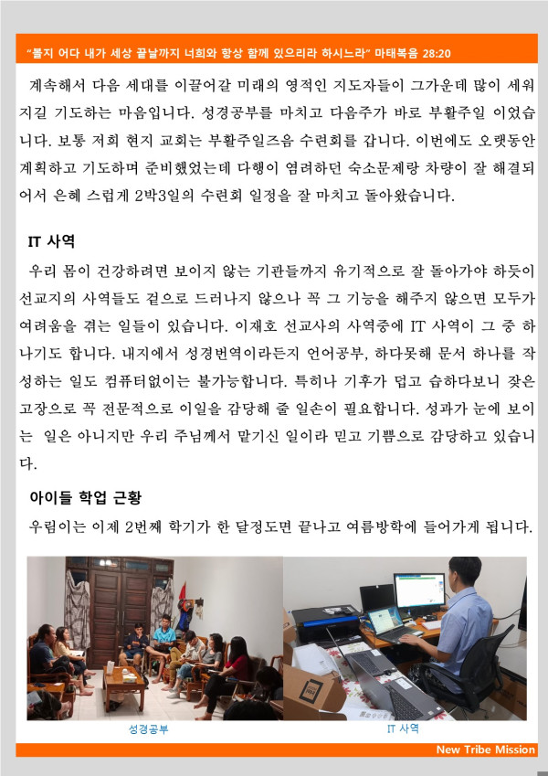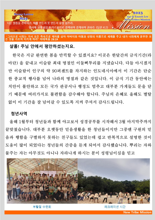 인도네시아 이재호 선교사님 선교소식 2023년 4월 페이지 정보 작성자 밴쿠버예수비전 댓글 0건 조회 2,419회 작성일 23-05-15 21:55 목록 본문 함께 기도로 동역해 주셔서 감사드립니다! 이전글인도네시아 이재호 선교사님 선교소식 2023년 8월 소식 23.09.11 다음글목요 거리전도 모임 22.11.10 댓글 0 댓글목록 등록된 댓글이 없습니다. 목록