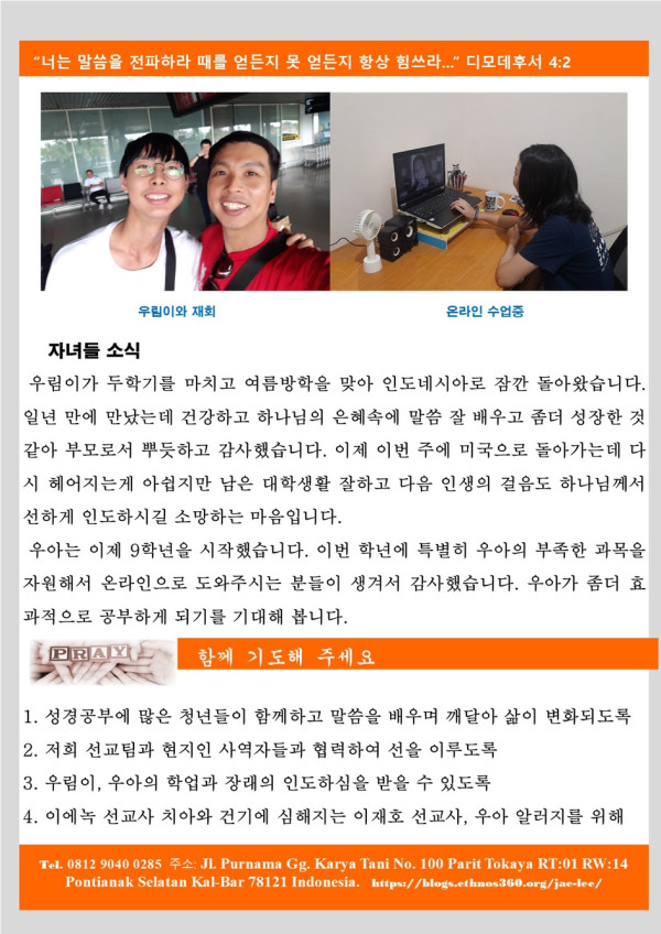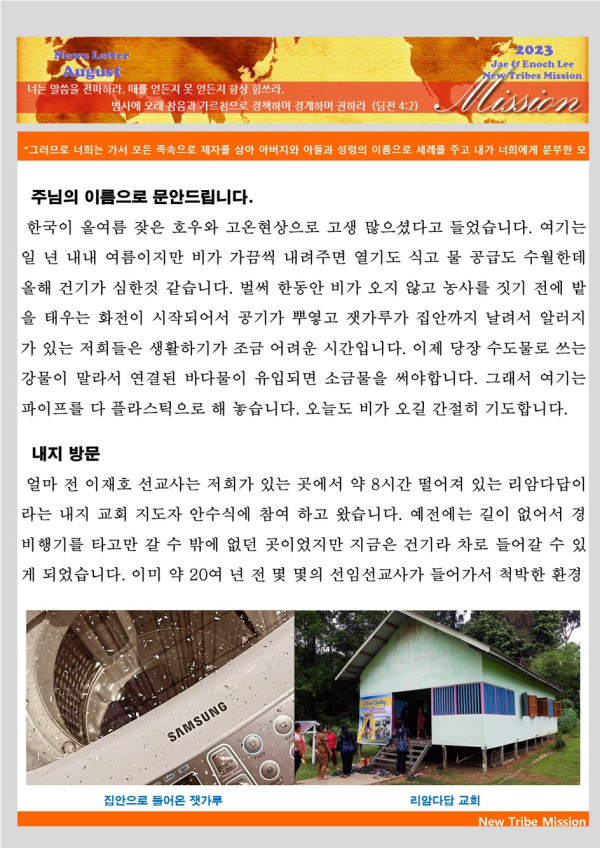 인도네시아 이재호 선교사님 선교소식 2023년 8월 소식 페이지 정보 작성자 밴쿠버예수비전 댓글 0건 조회 1,854회 작성일 23-09-11 21:07 목록 본문 기도제목을 읽으시면서 바로 기도해 주시기 바랍니다! 이전글홀리플레임 정선희 선교사님 소식(7월 8월 2023년) 23.09.11 다음글인도네시아 이재호 선교사님 선교소식 2023년 4월 23.05.15 댓글 0 댓글목록 등록된 댓글이 없습니다. 목록
