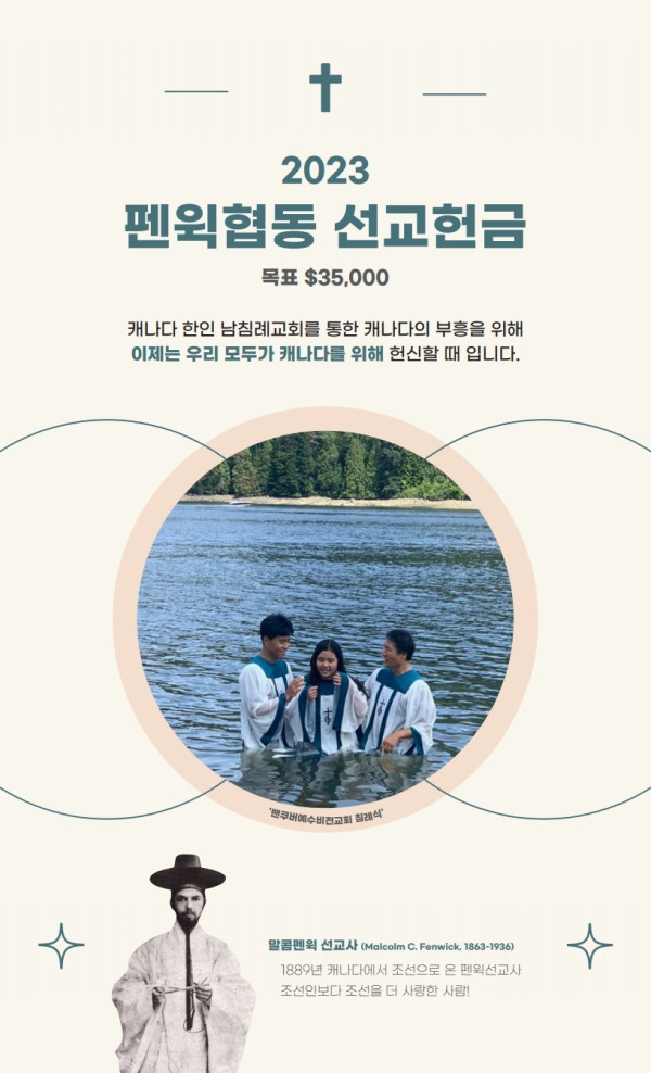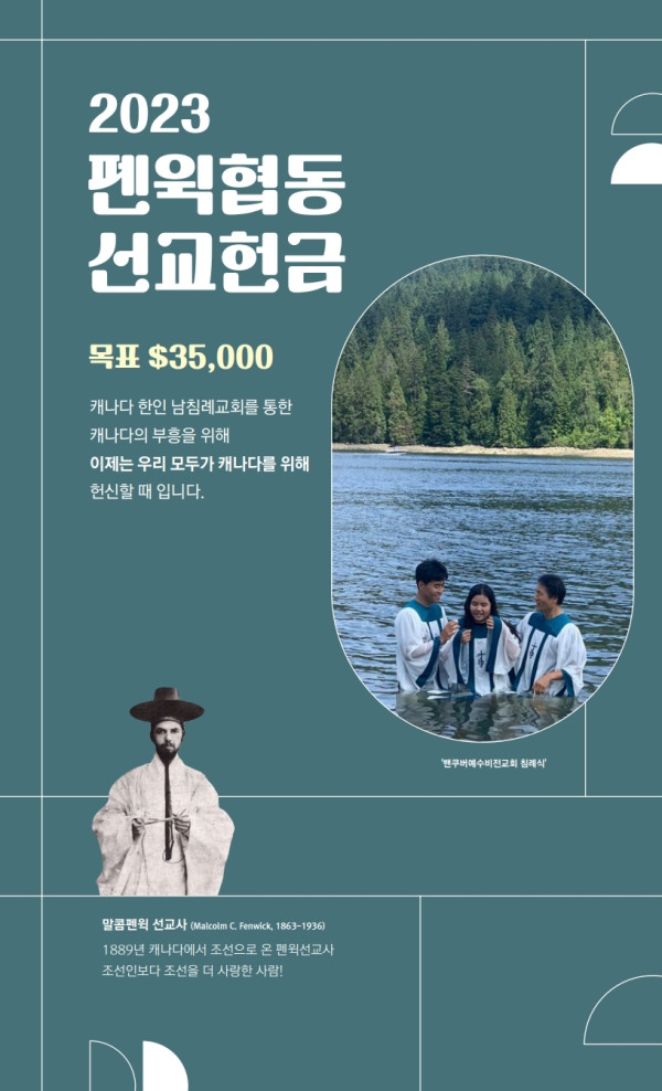 이제 캐나다 한인 남 침례교에서 선교사님의 뜻을 기리면서, 우리가 캐나다를 위하여