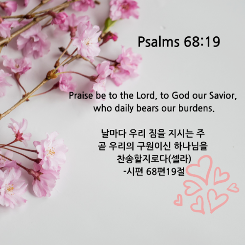 주님께서 선물로 주신 건강을 잘 관리하는 것이 주님의 뜻입니다. 예수님께서 우리를 모든 죄에서 구원하시고 모든 고통, 모든 병을 대신 짊어지셨습니다. 오늘도 날마다 우리의 짐을 대신 져주시는 주님께 염려 대신 감사와 기도로 마음과 생각을 지키는 승리의 날 되시길 축복합니다.
